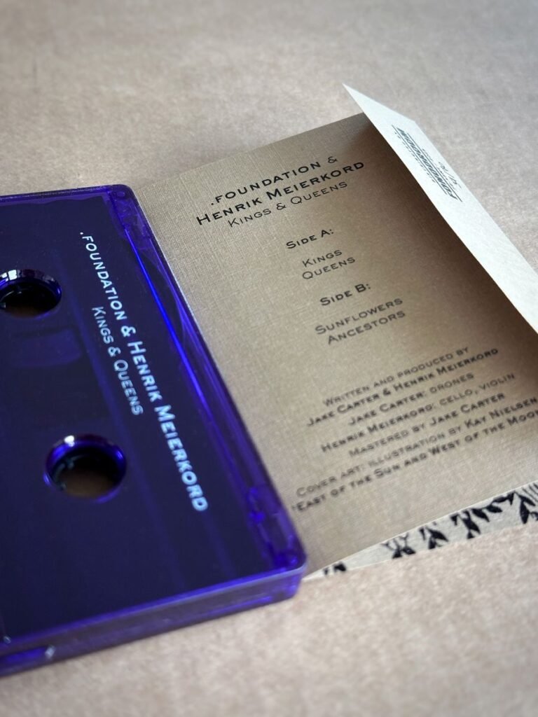 On Kings and Queens, Jake Carter under the name .foundation joins Swedish cellist and composer Henrik Meierkord for a collaboration grounded in patience and depth. Issued by Le Mont Analogue as LMA 06, the EP inhabits the language of ambient and drone while expanding it through tactile instrumentation. Granular synthesis, field recordings, and sustained tonal structures establish a vast sonic terrain, while cello and violin introduce breath and contour. The interplay between electronics and strings shapes a work that is deeply intimate.
